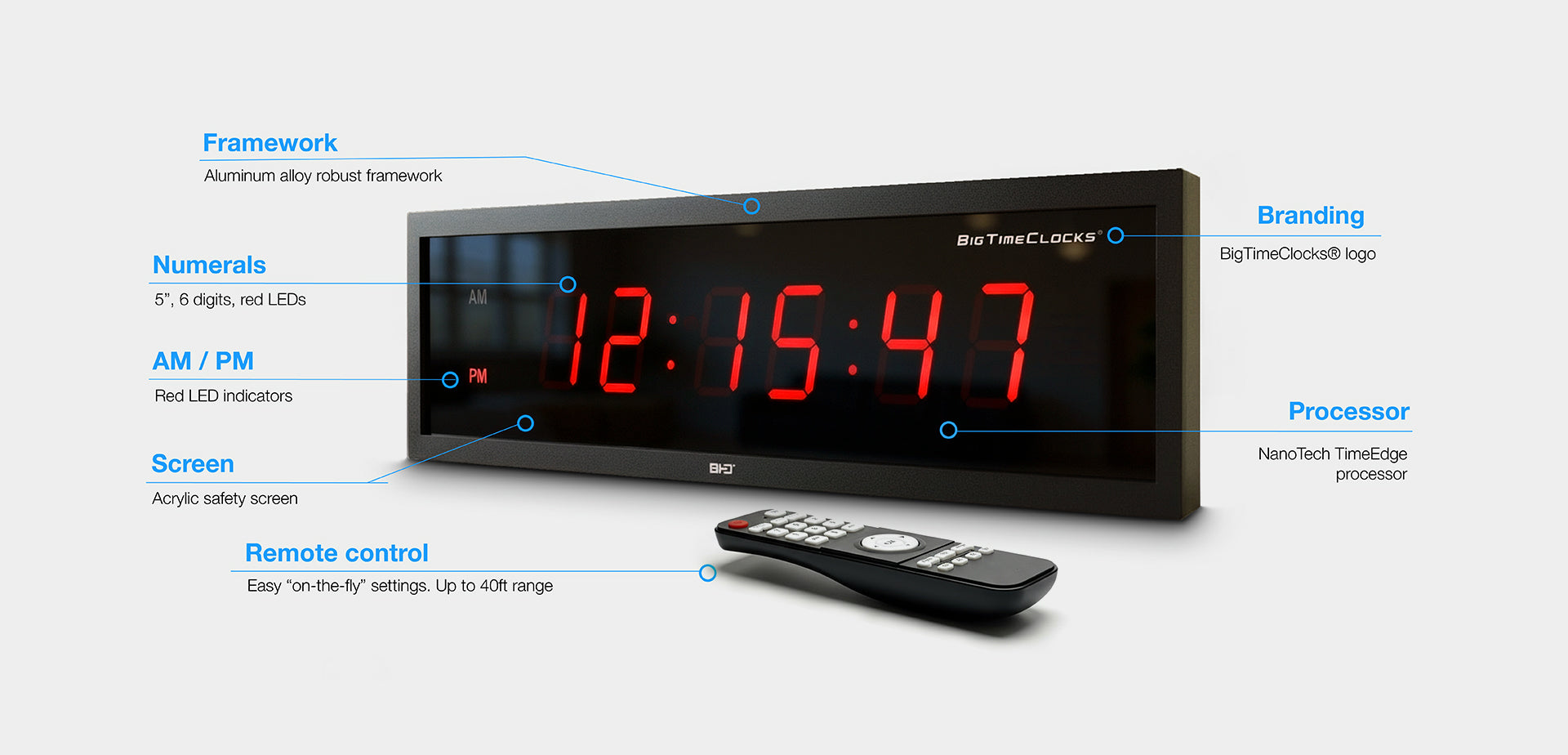 - BigTimeClocks® LEDs are 20% brighter than market standards